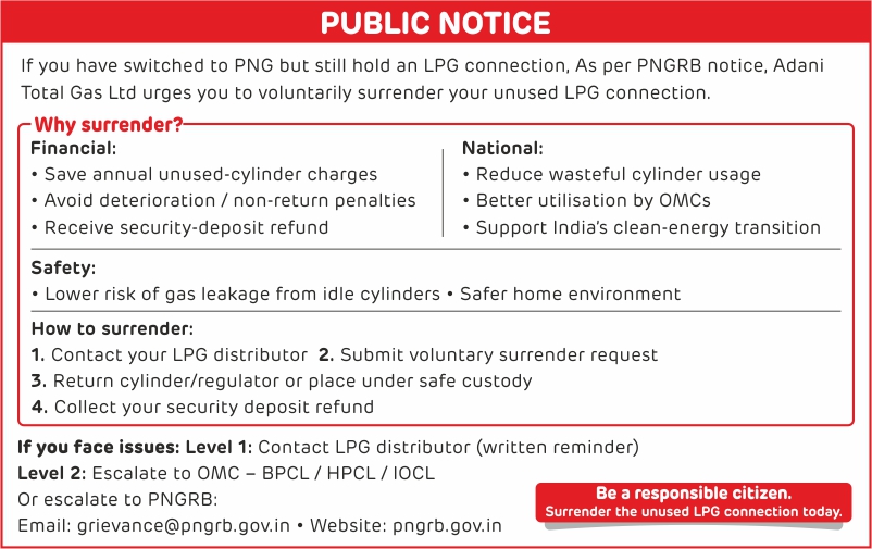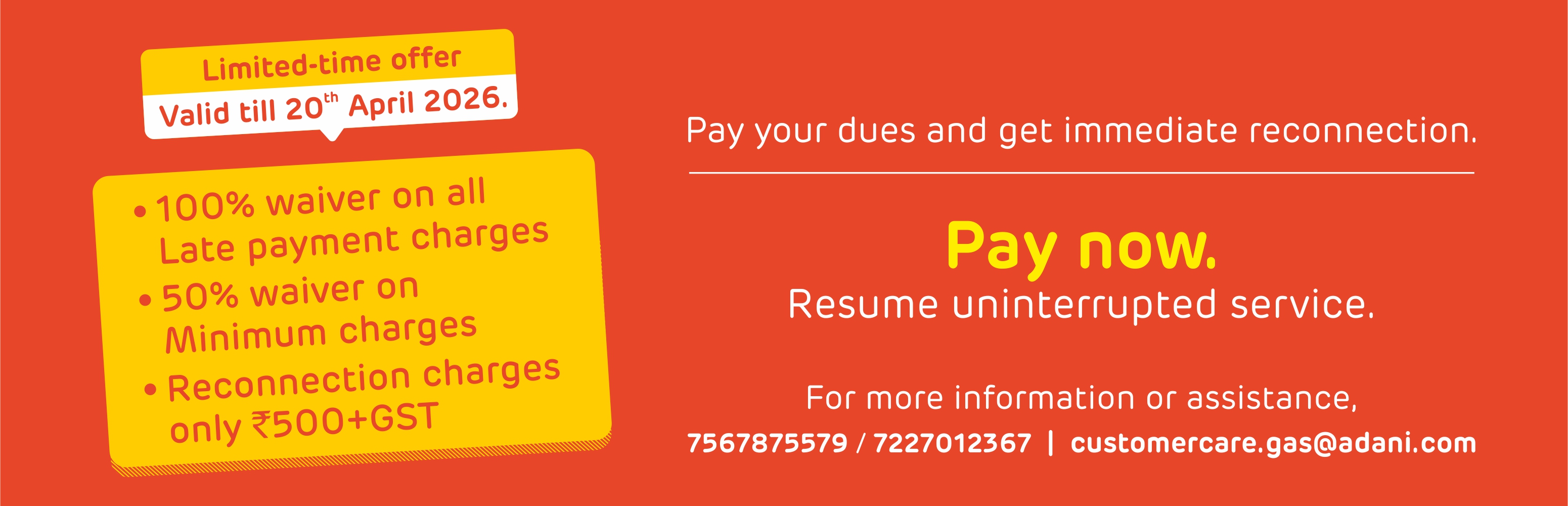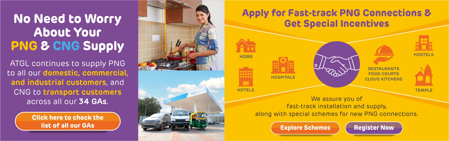 Natural gas is one of the safest and most reliable fuels available and rarely does a mechanical failure or storm interrupts its dependable delivery. Adani Total Gas Limited continually monitors our pipeline system to ensure safe and reliable delivery of natural gas to your home.