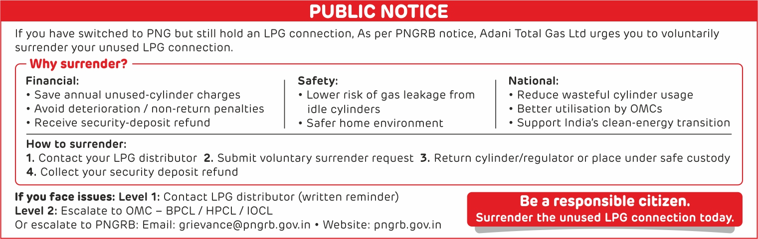Natural gas is one of the safest and most reliable fuels available and rarely does a mechanical failure or storm interrupts its dependable delivery. Adani Total Gas Limited continually monitors our pipeline system to ensure safe and reliable delivery of natural gas to your home.
